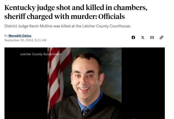 中新网9月20日电综合外媒报道,当地时间9月19日,美国肯塔基州地区法官马林斯在法院内遭遇枪击事件后身亡。美国警方称,该案嫌疑人为肯塔基州莱彻县警长斯泰斯因,已被控谋杀罪。