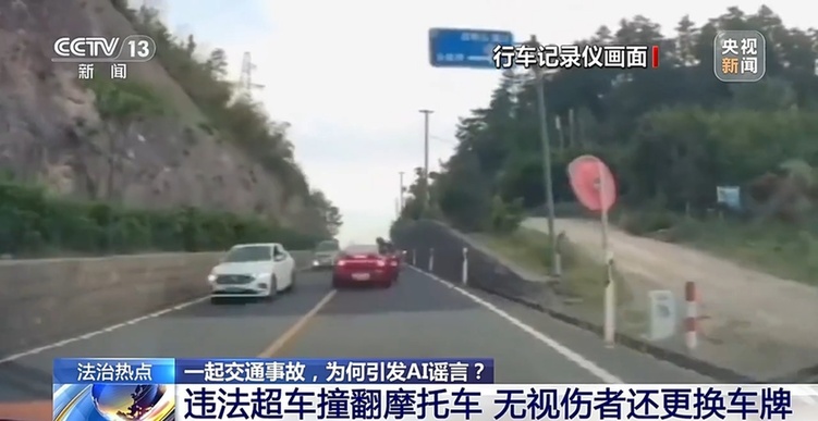 违法超车撞翻摩托车 无视伤者还更换车牌