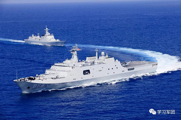 2018年,井冈山舰随编队参加远海训练,创造多项新纪录。