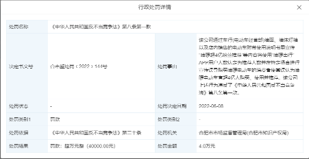 此外,此前该公司通过车行(电动车经营部)墙面、墙体灯箱以及店内销售的电动车附带使用说明书里宣传“哈啰超4亿粉丝推荐”等内容将使用“哈啰出行”APP用户人数认定为推荐人数并在特定场合进行宣传误导购买哈啰电动车的消费者使其误认为哈啰电动车有超4亿人购买、使用并推荐。违反了《中华人民共和国反不当竞争法》第八条第一款,被合肥市市场监督管理局处以罚款4万元。