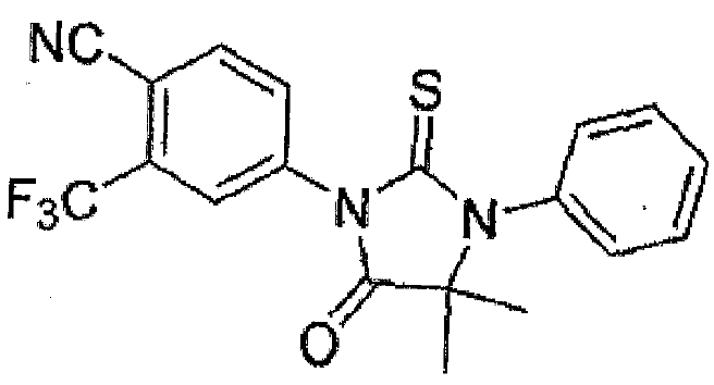 根据本专利说明书背景技术记载,前列腺癌的主要治疗方法为手术或药物去势剥夺雄激素。给药抗雄激素物质通过竞争雄激素结合来阻断雄激素受体(AR)功能,降低AR活性。尽管开始有效,但是这些治疗很快就失败了,癌症变为激素抵抗性。AR 的过表达已经足够使得从激素敏感性发展到激素难治的前列腺癌,意味着比当前药物更好的AR抑制剂能够减缓前列腺癌的发展。比卡鲁胺是最常用的抗雄激素物质,其虽对激素敏感性前列腺癌的AR具有抑制作用,但对于在激素抵抗性前列腺癌中其不能抑制AR,需要具有更有效的拮抗活性和最小的激动活性的更好的AR抑制剂来延迟疾病的发展并用来治疗致命的激素难治的前列腺癌。因此,本专利提供了如权利要求1的化合物。