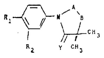 其中R1可选为氰基(-CN),R2可选为三氟甲基(-CF3);Y可为氧;-A-B-可选为 ,其中X可选为硫原子,当R3选自芳基时,可组成如下化合物苯环-咪唑环-苯环相连的三环结构,