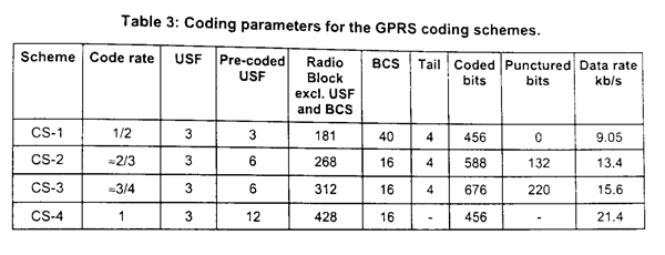 3、3GPP TS 03.64标准第6.5.5.1.1条GPRS PDTCH编码参数表3