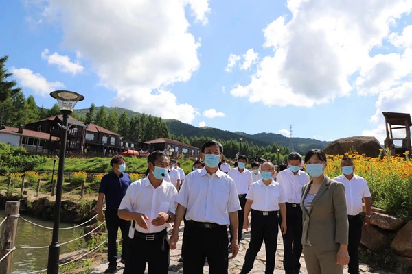 7月21日,全国人大常委会副委员长曹建明率全国人大常委会执法检查组在海林市横道河子镇七里地村检查农村人居环境整治、乡村旅游业发展、乡村文化保护等情况。周誉东 摄