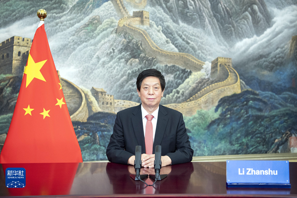 全国人大常委会委员长栗战书27日应邀在泰国国会成立90周年庆祝活动上发表视频致辞。