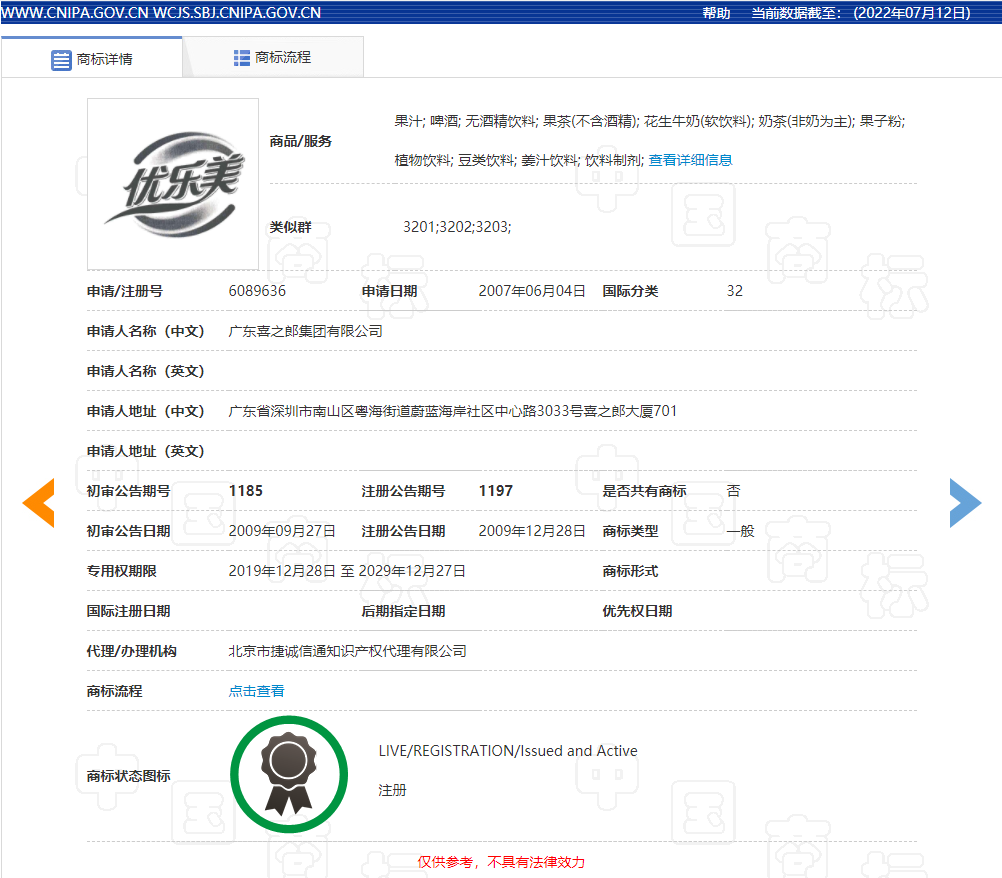 “我是你的什么?你是我的优乐美啊!原来我是奶茶啊?这样,我就可以把你捧在手心里了。”十几年前由周杰伦和江语晨说出的这段广告词,是不是至今让你记忆犹新呢?当年,品牌代言人周杰伦亲口说出的这句“你是我的优乐美”,让广东喜之郎集团有限公司(下称喜之郎公司)于2007年推出的优乐美奶茶获得了极高的关注度。近日,一起由北京市高级人民法院(下称北京高院)二审判决的“优乐美及图”商标权无效宣告请求行政纠纷案也引发多方关注。这起案件究竟是怎么回事呢?