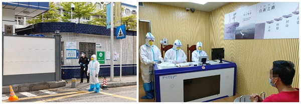 疫情期间,看守所实行封闭式管理。检察人员到看守所送达提审相关法律文书,并取回当日提审完毕的案件材料,需要提前联系,身穿防护服,由看守所预先安排人员在看守所大门口交接材料。