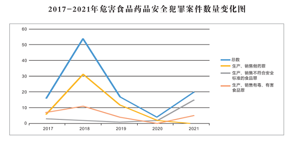 白皮书显示,2017年至2021年,龙岗法院全力保障人民群众“米袋子”“菜篮子”“药瓶子”安全,审理了逾百宗危害食品药品安全犯罪案件,严厉惩处了一大批危害食品药品安全的犯罪分子。五年来共审理危害食药安全案件111宗154人,对152名罪犯判处刑罚,对不法分子形成了强大震慑。其中,尤以危害药品安全犯罪案件审理成效突出,经过持续多年的打击,此前多发频发的生产、销售假药犯罪得到有效遏制,案件数量自顶峰时的2015年348宗逐年减少,2021年已减少至0宗。