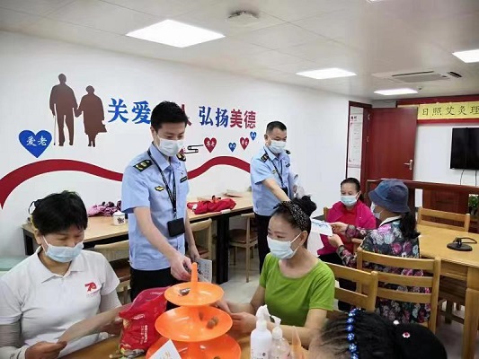 执法人员在新安街道日间照料中心开展反养老诈骗宣传。通讯员供图