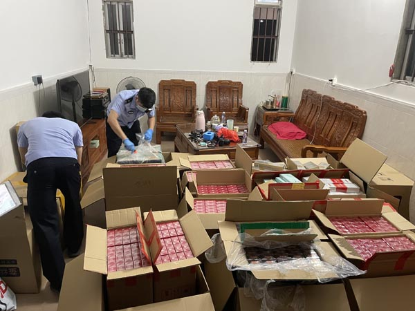 行动期间,汕尾警方在陆丰东海查获假烟窝点。饶子龙/摄