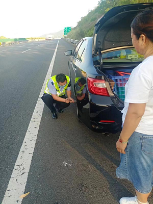 经询问得知,小车驾驶员载着一家人从惠州出发回淡水,行驶至该路段遭遇爆胎,车辆无法行驶。但该驾驶员卸了半天轮胎也没卸掉,正手足无措时,恰好被巡逻交警遇见。此时,高速公路上车流量大,多耽误一分钟就多一分钟危险。民警麻利地从司机手上接过工具,很快就将轮胎卸下来,并迅速换上备胎。前后用时不到10分钟。驾驶员对民警的热情帮助很感动,再三表示感谢。