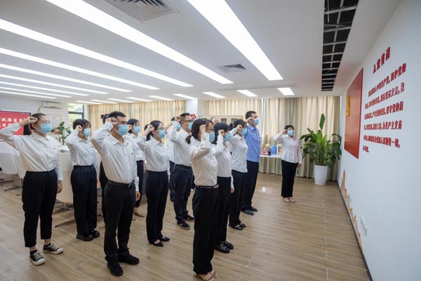 民主与法制网讯(记者 张丽娥 通讯员 周其丽)“我志愿加入中国共产党,拥护党的纲领,遵守党的章程······为共产主义奋斗终身,随时准备为党和人民牺牲一切,永不叛党。”9月29日,深圳深汕特别合作区人民法院(下称“深汕法院”)开展“政治生日”主题党日活动暨集中学习会,这是全体党员重温入党誓词的场景。党员会议室里,党员们围坐在一起,讲述入党故事,叩问入党初心。