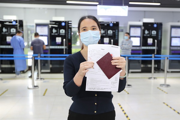 在舱内办业务的市民章女士 通讯员供图