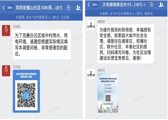 通过在群内发送线上调查问卷,开展群内网上评议、网上投票等方式,广泛收集居民群众对城中村用水、用电等意见建议,鼓励居民群众参与社区业委会选举、加装电梯等民生事务决策,切实做到问需于民、问计于民。