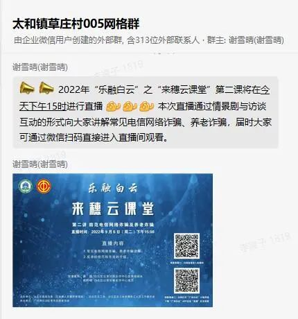 综合网格员在网格微信服务群内推送反诈宣传信息