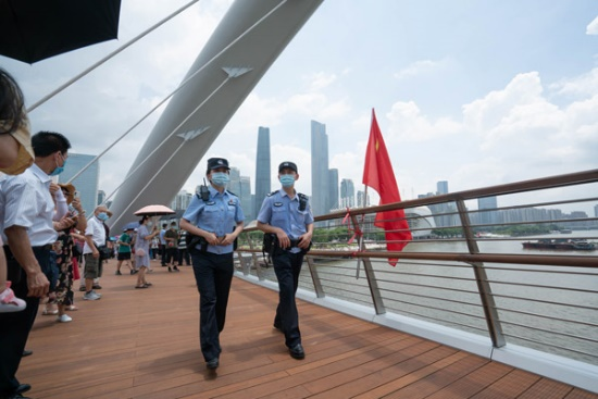 广州警方坚持“压警情”和“防突发”双线发力,以市域边界和城区重点区域为核心,实施“水、陆、空”立体布防,深化社会治安巡防管控“四个一”体系建设运行,实现社会面精准布防。