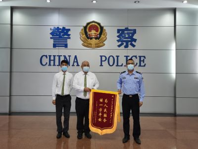 11月23日,小区物业将一面印有“为人民服务,保一方平安”的锦旗送到东凤公安分局。