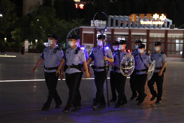 湛江公安民警在重点治安区域开展常态化巡逻防控,守护百姓平安。 通讯员供图