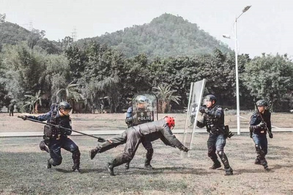 此外,深圳市公安局还组织机动训练支队、特警支队警力携带相关装备参加省公安厅“开训日”活动。开训当天的广东省公安民警培训中心内,一场“建筑物入室攻坚”演练在现场惊心动魄展开,来自深圳市公安局特警支队的27名参训人员联合其他地市组建成一支精兵劲旅,展示了一场“召之即来、来之能战、战之能胜”的实战演训。