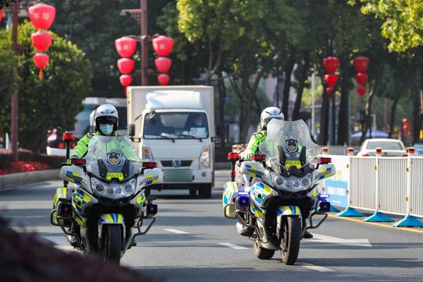 元旦期间,佛山交警铁骑在禅城城区巡逻。 通讯员供图