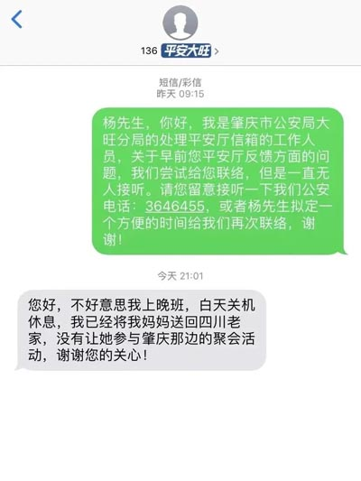 经过执着的联系,终于收到杨先生的回应,他已将母亲送回四川老家,并对大旺公安“平安厅”信箱专班认真对待每一封来信的工作表示感谢。