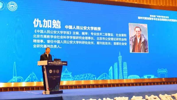 中国人民公安大学仇加勉教授在研讨会上作报告。 通讯员供图