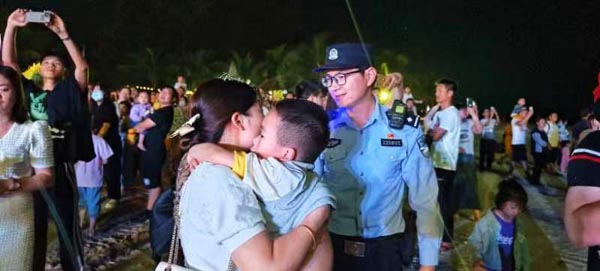 茂名民警在浪漫海岸景区找回走失小孩。 钟伟国/摄