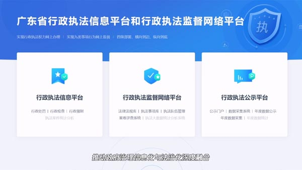 为提升行政执法规范化水平,推动全省有效提升行政执法效能,省司法厅还从打通“平台壁垒”“数据壁垒”上发力,加快促进数据依法有序流动,发布《行政执法综合信息数据元规范》地方标准,率先统一归集“信用广东”“双随机、一公开”“互联网+监管”等综合行政执法数据,加快打通数据资源共享“最后一公里”,推进实现行政执法综合数据跨层级、跨地域、跨系统、跨部门、跨业务全面共享。