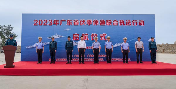 当日上午9时,广东省2023年海洋伏季休渔联合巡航执法行动启航仪式在汕头南澳前江码头举行。启航仪式结束后,4艘海警执法舰艇及4艘海洋综合执法部门公务船鸣笛起航,开赴闽粤交界海域等重点海域开展巡航检查,严厉打击国内渔船违规出海偷捕、跨海区作业、涉渔“三无”船舶以及电、毒、炸鱼等违法犯罪行为,进一步巩固伏季休渔初始即严的管控态势。