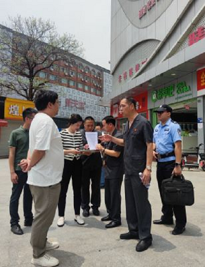 组织当事人及现场租户就如何返还商铺进行调解。通讯员供图