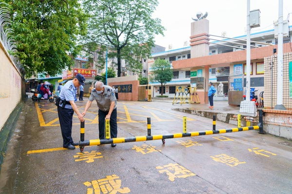惠州市公安局森林分局民警想方设法解决校门口交通安全隐患。通讯员供图