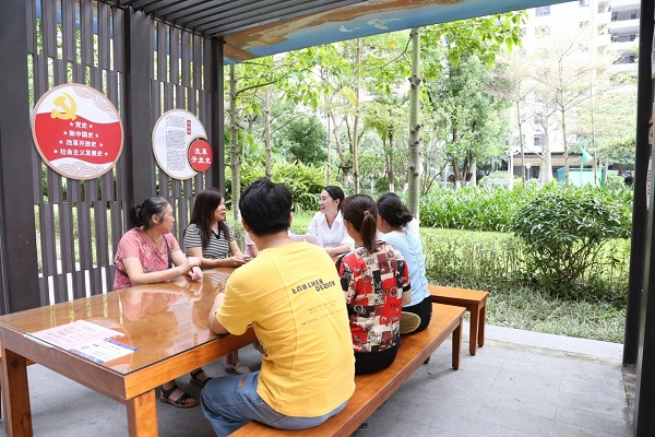 2022年以来,里享家社区打造了“党建庭院”,为居民搭建了社区议事的新平台。几张板凳,没有台上台下,陈设简单,却是社区居民茶余饭后最爱去的场所。在“党建庭院”中时常会举办“睦邻茶话会”,四方桌一摆,长条凳一放,沏杯“解忧茶”,用心听民声。从小区环境、公共配套设施到化解邻里矛盾,一件件事关居民生活的社区大小事都在这一方小小庭院中,在友好和睦的氛围中共同商议决定。
