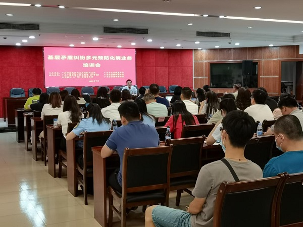 马胜佼为凤阳街调解员进行培训。受访单位供图