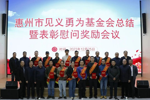 会议还宣读了《2023年市见义勇为基金会表彰决定》,为刘秋龙等15位受表彰代表颁奖,并全面总结2023年度见义勇为工作,研究和部署明年工作。会议指出,要深刻认识见义勇为工作的重要意义,加强见义勇为的褒奖宣传工作,推动完善见义勇为工作制度,加强和规范慰问奖励工作,坚持把见义勇为工作作为平安惠州、文明城市建设的重要举措来抓,在全社会树立见义勇为、彰显正义的新时代鲜明导向,汇聚强大正能量,为构建我市和谐社会,建设平安惠州作出新的贡献。