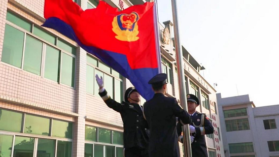 1月10日清晨,大旺公安举行了庄严的升警旗仪式。护旗手英姿挺拔、目光如炬,迈着坚定有力的步伐,护卫着中国人民警察警旗行进到旗杆前。伴随着《中国人民警察警歌》,擎旗手挥臂扬旗,警旗迎着晨风和朝阳徐徐升起,猎猎作响,全体民警整装肃立,向警旗致以崇高的敬礼,并齐声高唱《中国人民警察警歌》。