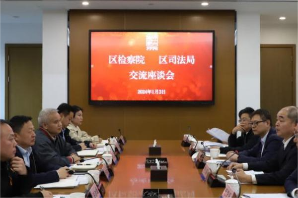 民主与法制网讯(□张紫薇 通讯员 陈裕琪)为进一步加强区检察院与区司法局在府检联动、企业合规、执法衔接、多元解纷等方面的协作配合,1月3日下午,深圳市坪山区检察院与坪山区司法局召开工作交流座谈会。区检察院检察长候选人刘山泉,党组成员、副检察长胡京怀、周俊峰,区司法局党组书记、局长白宁,党组成员、副局长钟远平、冷冰峰等参加会议。