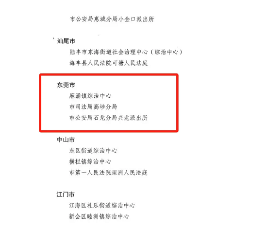 民主与法制网讯(□魏历 通讯员 东政宣)近日,广东省东莞市麻涌镇综治中心、东莞市司法局高埗分局、东莞市公安局石龙分局兴龙派出所获得“2023年度广东省‘1+6+N’基层社会治理工作体系建设先进典型”省级荣誉。