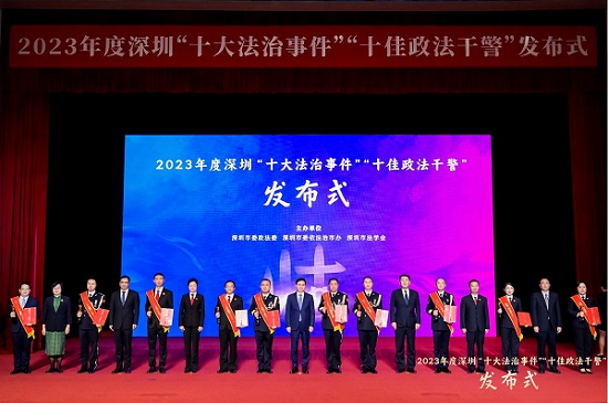 深圳“十大法治事件”“十佳政法干警”评选活动由深圳市委政法委、市委依法治市办、市法学会联合主办,通过对年度法治领域具有重大影响和示范意义的事件、对政法战线的先进典型开展评选,全力凝聚中国特色社会主义法治先行示范城市建设的强大合力。“十大法治事件”评选已连续举办11届,集中展示了深圳法治建设领域的亮点;“十佳政法干警”评选已连续举办8届,充分展现了深圳政法队伍的担当和风采。历届评选活动全面记录了法治深圳的前进步伐,一路见证了先行示范的生动实践,已成为深圳的重要品牌和靓丽名片。