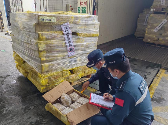 海警执法员清点冻品。通讯员供图