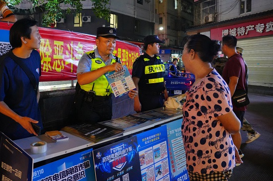 “网上兼职不靠谱,警惕诈骗”“不做诈骗分子的工具人”“公园纳凉注意自身财物安全”“养老诈骗就是专门针对咱们老年人,我们这样防骗……”入夜后,宝安分局福海派出所组织警力正在辖区广场开展精准宣防,吸引很多纳凉群众积极参与。这是深圳公安开展夏夜治安巡查宣防行动的一个场景,这样的精准宣防工作在全市范围内同步展开。