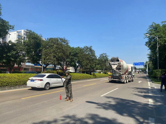 正在值班的海警执法员发现情况后,第一时间上前查看伤员情况,安抚伤员情绪,同时拨打120急救、122交警电话。由于肇事水泥罐车较为庞大,停在马路中间,给道路交通造成堵塞。海警执法员见况立即设置临时警示标志,指挥现场交通防止发生二次事故。