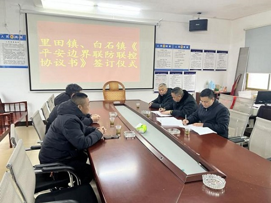 白石镇与湖南里田镇签订《平安边界联防联控协议书》。通讯员供图