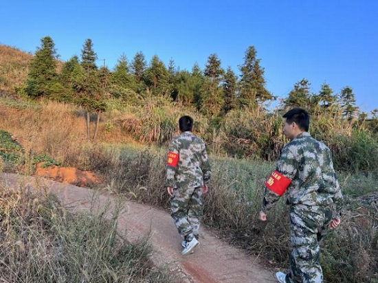 白石镇群防群治队伍到湘粤边界开展森林防火巡查工作。通讯员供图