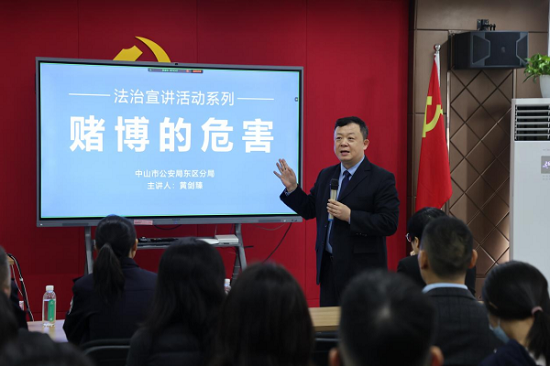 民主与法制网讯(□李锡平 通讯员 陈可)为积极响应国家关于加强防范电信网络诈骗和打击赌博违法犯罪的号召,深化企业职工对赌博和电信诈骗危害性的认知,切实增强企业职工识诈反诈、防赌反赌“免疫力”,引导广大游客提升识赌、拒赌、反赌意识和能力,营造积极向上、安全和谐的企业文化氛围。12月6日上午,广东省中山市东区公安分局联合中航美丽集团,在集团总部培训室组织开展第十三期法治宣讲活动。