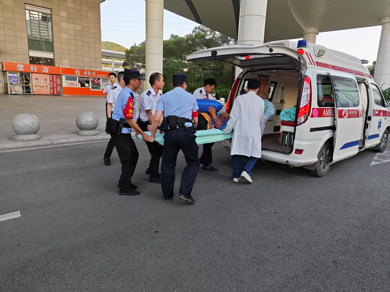 约20分钟后,120救护车抵达现场。民警与车站客运人员迅速开辟快速通道,协助医护人员将旅客抬上担架,并护送其安全登车。