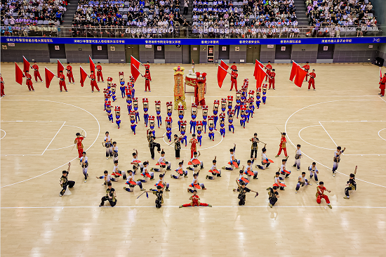 深圳少年警营舞狮队、武术队带来《狮腾武跃》表演。通讯员供图