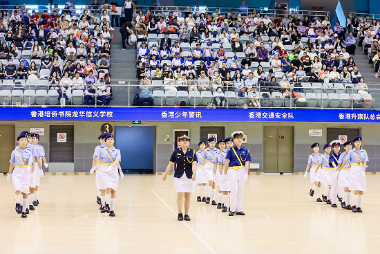 来自香港的香港少年警讯等三支制服团队也受邀参加了现场活动。香港升旗队总会以整齐划一的花式步操演绎《祖国不会忘记》,刚劲有力的队列动作与铿锵乐章完美融合,展现香港青少年对祖国的深情礼赞;香港交通安全队则通过创意十足的《交通安全任我点》交通手号操,将具有香港特色的交通手号与动感音乐节奏巧妙结合,以活泼形式传递道路交通安全理念,展现出了港式纪律团队的独特魅力。