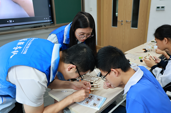 科普课程之后,少警们迎来了最期待的航空航天主题手工制作活动。在志愿者的悉心指导和帮助下,少警们从熟悉材料开始,逐步学习区分不同的结构部件,并小心翼翼地进行拼装。虽然过程中遇到了一些困难,但在志愿者的鼓励和帮助下,大家都克服了困难,最终成功完成了自己的作品。看着自己亲手制作的飞机,少警们的脸上洋溢着满满的成就感。这个手工制作活动不仅锻炼了同学们的动手能力,还培养了他们的空间组合思维,将科普知识以一种创新性的方式融入到青少年的实践中,让知识通过实际操作变得更加生动、有趣。
