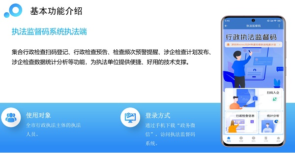 据悉,执法监督码分为企业端、行政执法端和执法监督端,三者互联互通,为行政执法主体、市场商事主体和执法监督主体三者之间搭建起双向互动的桥梁,推动实现规范执法、便捷服务和高效监督的有机统一。