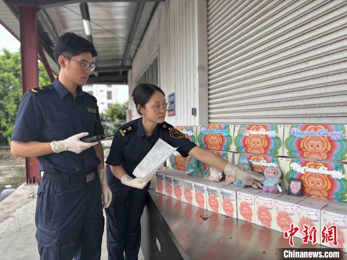 中新网广州7月4日电 (许青青 徐子安)据黄埔海关4日消息,黄埔海关所属萝岗海关关员近日在对跨境电商出口货物开展监管时,发现其中有一批货物未申报。经开箱查验,货物中装有大量印有“POP MART”(泡泡玛特)品牌标识的包装盒和“LABUBU”形象特征的玩偶,共7536件,现场关员初步判断该批货物涉嫌侵权。